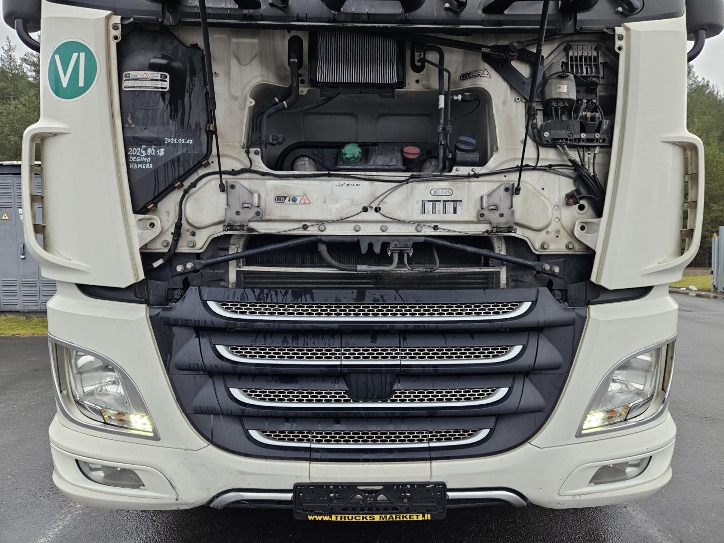 Vilkikas buvo aptarnautas autorizuotame DAF servise. Nuo pirmos eksploatacijos dienos turėjo vieną savininką, yra pilna ir skaidri aptarnavimo istorija. Autorizuotame DAF centre buvo išpirktas techninės priežiūros kontraktas. Prieš sustabdant vilkiką pardavimui, jis buvo pilnai patikrintas – visi nustatyti defektai, jei tokių buvo, pašalinti. Eksploatacijos metu buvo keistas VTG mechanizmas ir velenėlis, visi techniniai aptarnavimai atlikti reguliariai pagal gamintojo reikalavimus. Vilkikas techniškai tvarkingas, paruoštas tolimesniam darbui be papildomų investicijų. Taip pat turime daugiau analogiškų vilkikų – tiek SSC, tiek SC komplektacijų. T. A. galioja 2026.10.14.