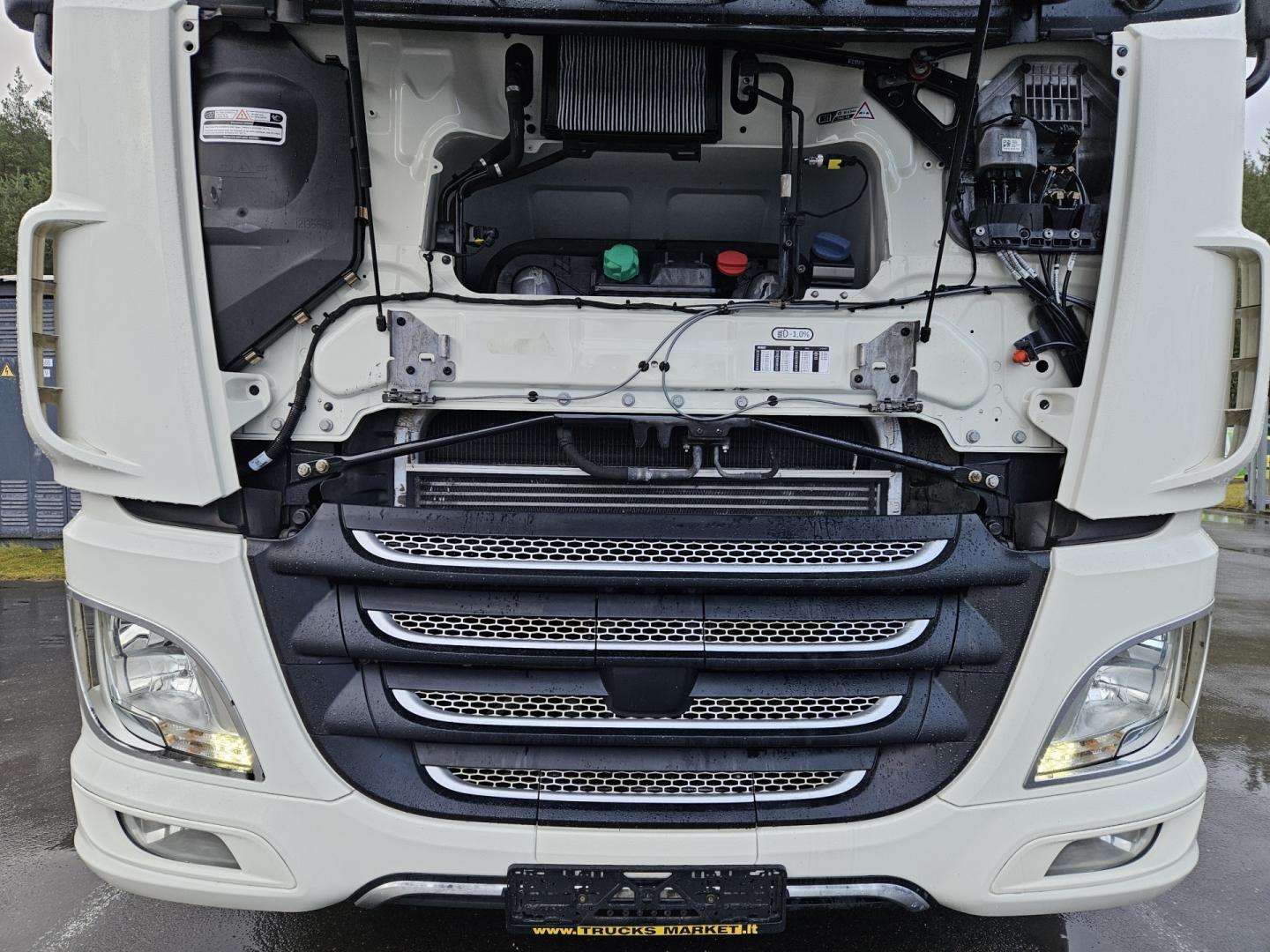 Vilkikas buvo aptarnautas autorizuotame DAF servise. Nuo pirmos eksploatacijos dienos turėjo vieną savininką, yra pilna ir skaidri aptarnavimo istorija. Autorizuotame DAF centre buvo išpirktas techninės priežiūros kontraktas. Prieš sustabdant vilkiką pardavimui, jis buvo pilnai patikrintas – visi nustatyti defektai, jei tokių buvo, pašalinti. Eksploatacijos metu buvo keistas VTG mechanizmas ir velenėlis, visi techniniai aptarnavimai atlikti reguliariai pagal gamintojo reikalavimus. Vilkikas techniškai tvarkingas, paruoštas tolimesniam darbui be papildomų investicijų. Taip pat turime daugiau analogiškų vilkikų – tiek SSC, tiek SC komplektacijų. T. A. galioja iki 2026.03.07.